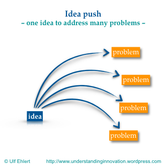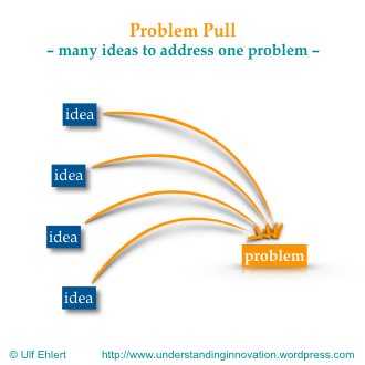 In traditional problem solving, we tend to focus on the problem statement first. Once we understand it (which is pretty easy for a known problem), we then move on to identify all the ideas for potential solutions that could contribute to a solution. The result is a rather deterministic mindset: the solution is systematically developed step by step, starting from a solid understanding of the problem. You might call this approach “problem pull“: We keep the focus on we the given, known problem and then seek to attract all the ideas necessary to solve. And we see the value of those ideas only in light of the specific problem we are focused on.