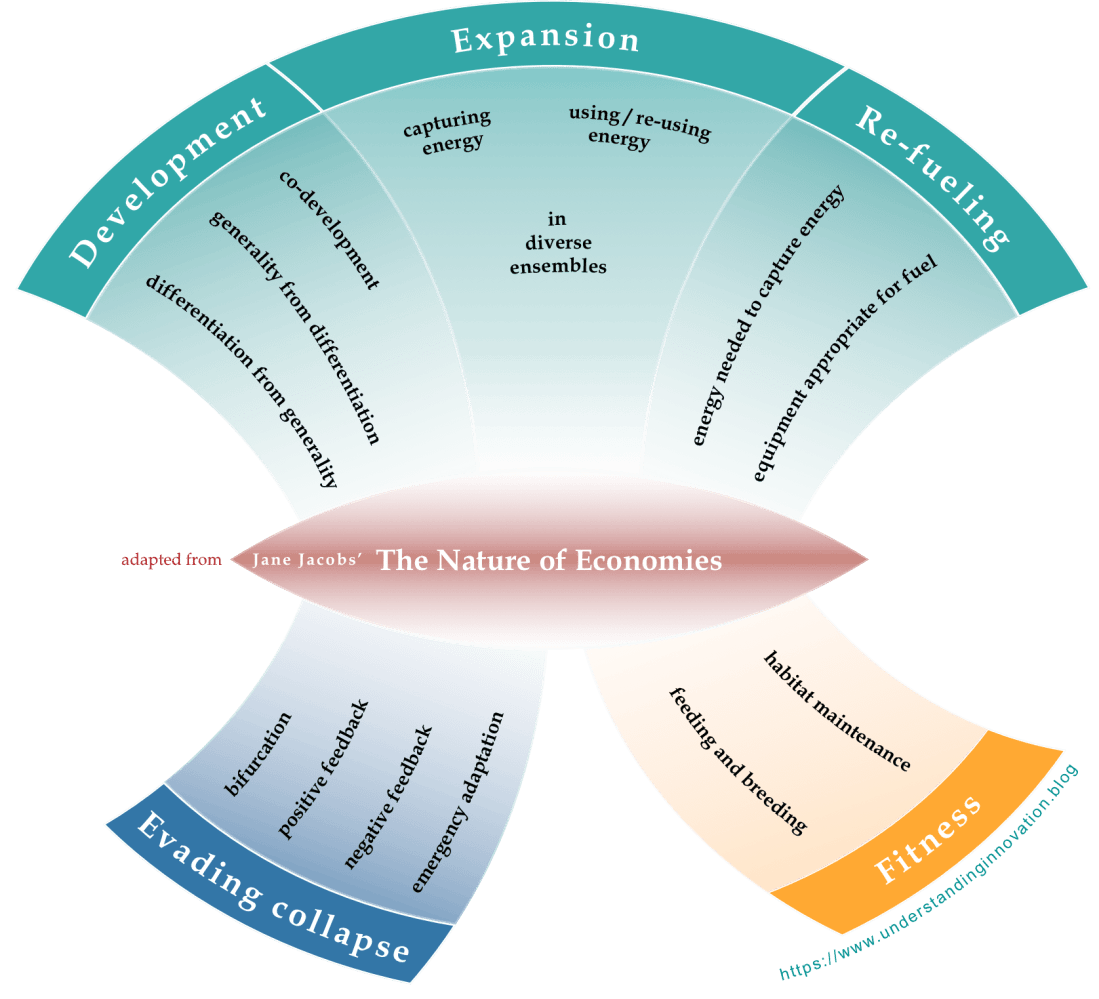 In 'The Nature of Economies', Jane Jacobs provides a view on a number of important aspects that often go unrecognised. Starting from her insights on an economy's main processes, the control mechanisms at work, and the fitness of an economy, we can take a comprehensive look at innovation targets, i.e., the types of problems our society needs to solve.