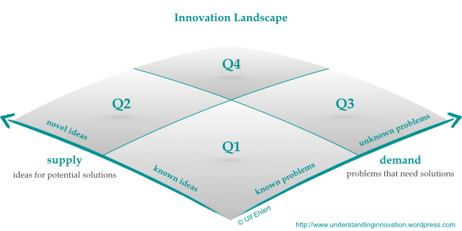 Recently I have described my concept of an innovation landscape along two axes: the demand for innovation, represented by the problems society is faced with, and the supply of innovation, represented by the ingenious ideas that have the potential to solve those problems. Today, I'll take a closer look at the four corners of this landscape.