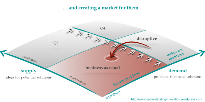 The innovation landscape I have sketched previously suggests that there could be some kind of symmetry. The third quadrant (disruptive) should have some similarity with the second quadrant (research), shouldn't it?