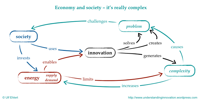 Recently I've presented some ideas on the complex interrelation between energy, society, and innovation. As you might have expected, the textual description of that topic is complex as well; hence I've worked on some simple charts to support the overall storyline. A first simple overview could look like two cycles connected through innovation. On the left, you'll find … Continue reading Energy and society – some simple charts …
